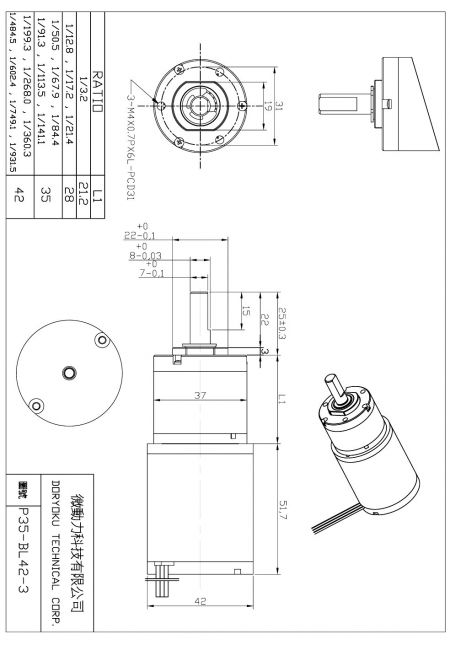 Based in Taiwan since 2000, Doryoku Technical Corp. is a DC gear motor manufacturer. Their main products, including 15W BLDC DIA 42 Geared, DC Planetary Gear Motors, Worm Gear Motors, Spur Gear Motors, which can be brushed, BLDC, stepping, NEMA, brushless, or with servo motors combined.