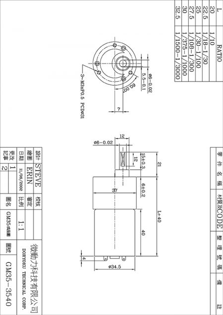 DIA35 DC Spur Gear Motor - GM35 | Over 25 Years High Torque & High-Quality DC Gear Motors Manufacturer | Doryoku Technical Corp.