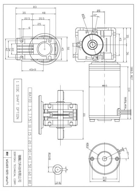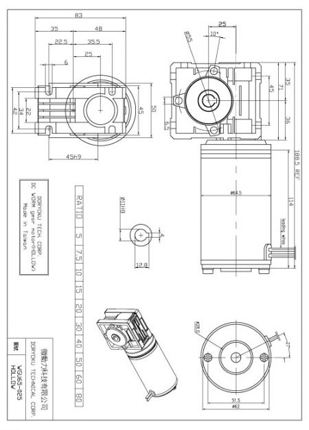 Motore a vite senza fine DIA65mm ad alta razione - Motore a ingranaggi DC A SPAZZOLE, SG45 SG62 | Oltre 25 anni di esperienza nella produzione di motori a ingranaggi DC ad alta coppia e alta qualità | Doryoku Technical Corp.
