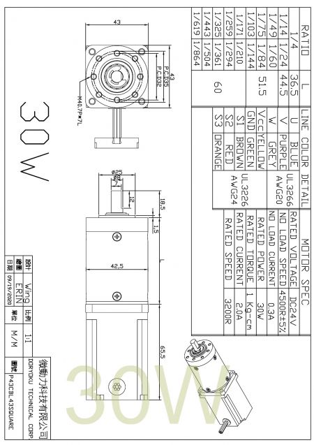 30W DIA43 BLDC Planet - | Ponad 25 lat producenta silników zębatych DC o wysokim momencie obrotowym i wysokiej jakości | Doryoku Technical Corp.