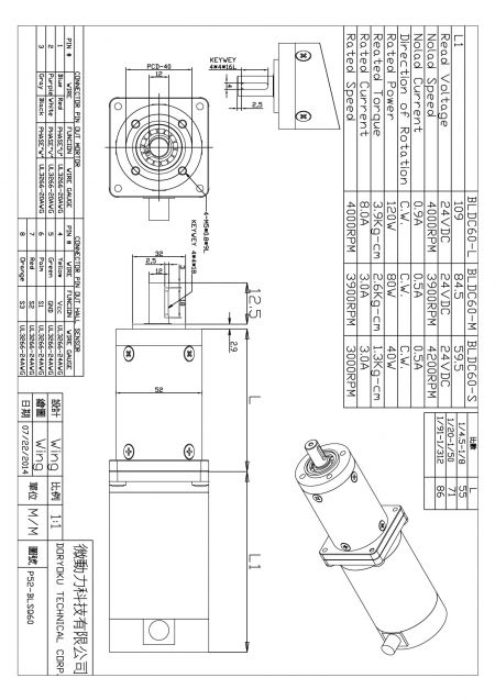Планетарный бесщеточный двигатель DIA 60. - | Более 25 лет производитель высококрутящего момента и высококачественных DC редукторов | Doryoku Technical Corp.