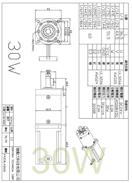 微動力科技 30W無刷方形43強力馬達服務簡介