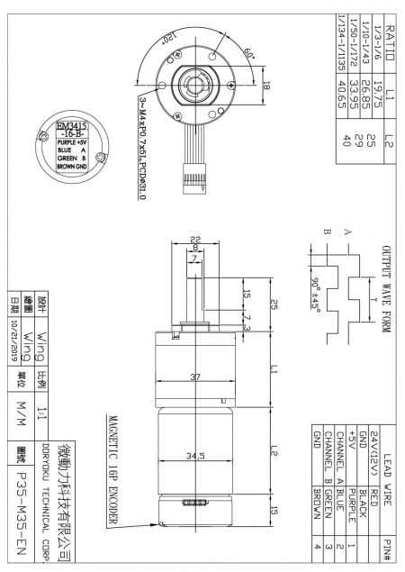- 外徑:Dia 37.5 x 74.7 - 98.1mm,出力軸 : 8mm